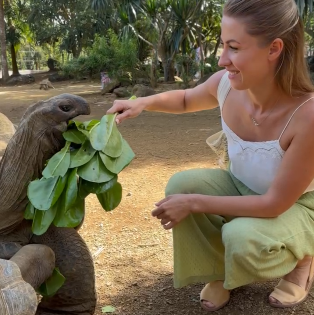 Встреча с сейшельскими черепахами оставила у меня особое впечатление. Эти удивительные долгожители могут доживать до 200 лет, и когда смотришь на них, возникает чувство, будто время для них течёт иначе. Я невольно подумала: даже когда нас не станет, они всё так же спокойно и неторопливо будут бродить по острову, поедая траву.